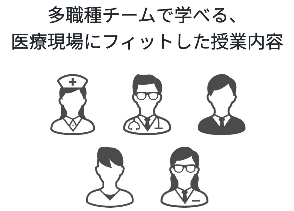 医師・看護師・事務などの医療関係者を対象に、6〜12ヶ月間で、必要なスキルを体系的に学べます。